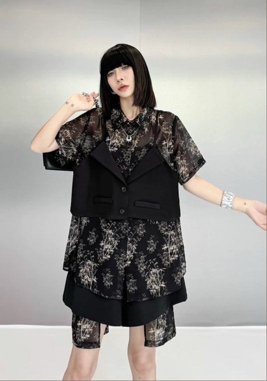 M 총장72/75cm 어깨너비41cm 가슴단면118cm 소매길이24cm 허리122cm 밑단134cm