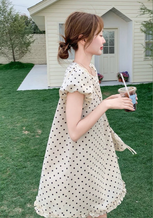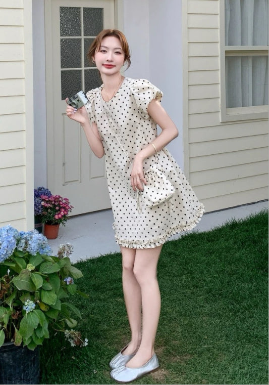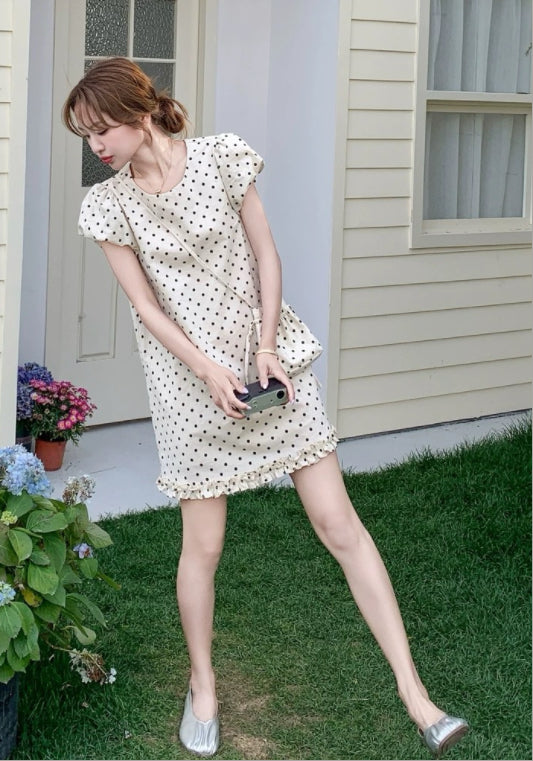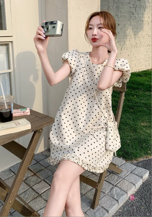 퍼프소매 도트 스커트