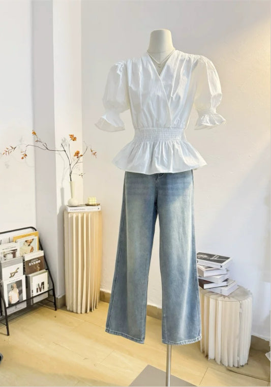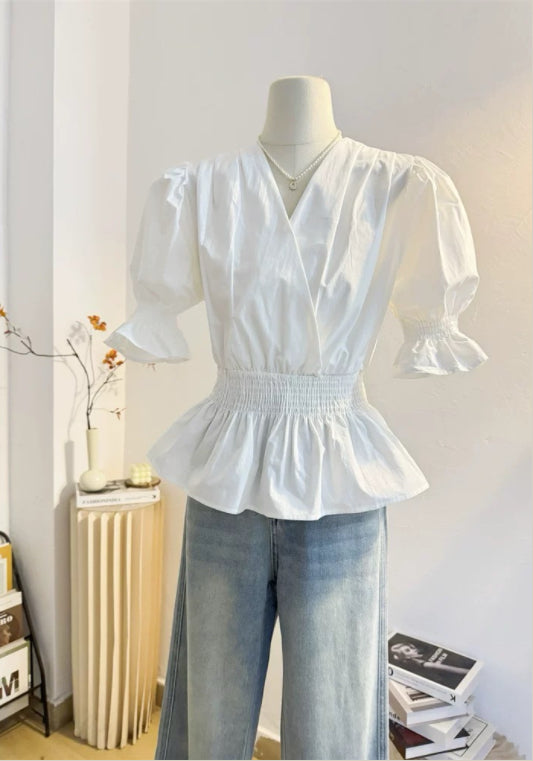 퍼프소매 허리 조절 셔츠